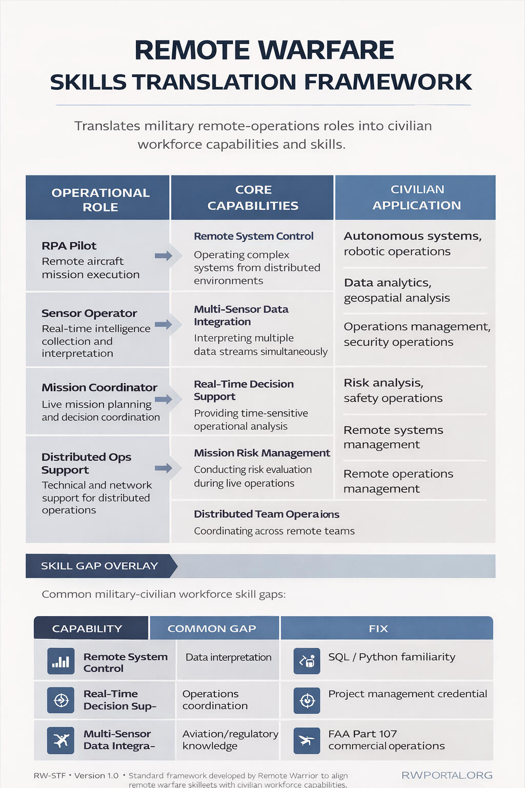 Converting military remote aviation and ISR experience into civilian-aligned roles and credentials.
